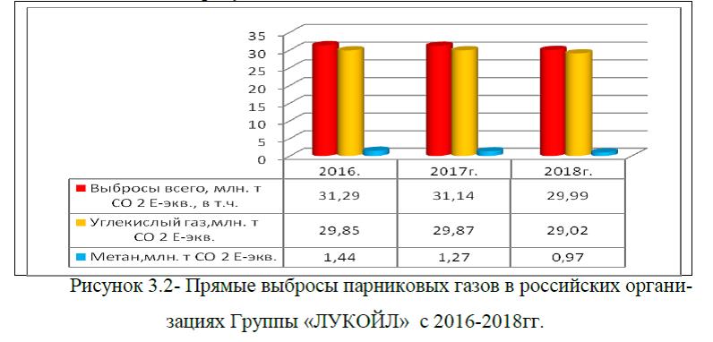Отметим, что за прошедший 2018г. ПАО «Лукойл» значительно сократил выбросы парниковых газов в российских организациях, которые в 2018г. составили 29,99 млн. т СО 2 Еэкв., против 31,14 млн. т СО 2 Еэкв. годом ранее, а по отношению к уровню 2016г. снижение выбросов парниковых газов составило 4,15%, рисунок 3.2.