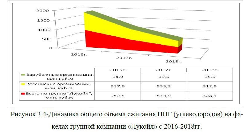 Отметим, что ранее ПНГ практически всегда сжигался в факелах, но такая переработка не является рентабельной. Поэтому целью компании ПАО «Лукойл» является продолжать увеличивать долю использования ПНГ, сокращая сжигание энергоресурса на факелах. По имеющимся данным объем сжигания ПНГ составил 328,4 млн.куб. м., а это ниже уровня прошлого года на 42,87%, и на 65,52% ниже значения показателя 2016г., рисунок 3.4.