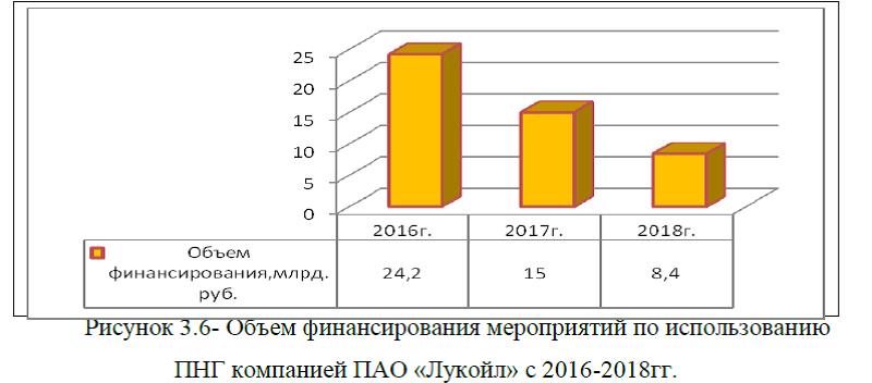 Объем финансирования мероприятий по использованию ПНГ группой компанией «Лукойл» значительно сократился и составил в 2018г. 8,4 млрд. руб., рисунок 3.6.