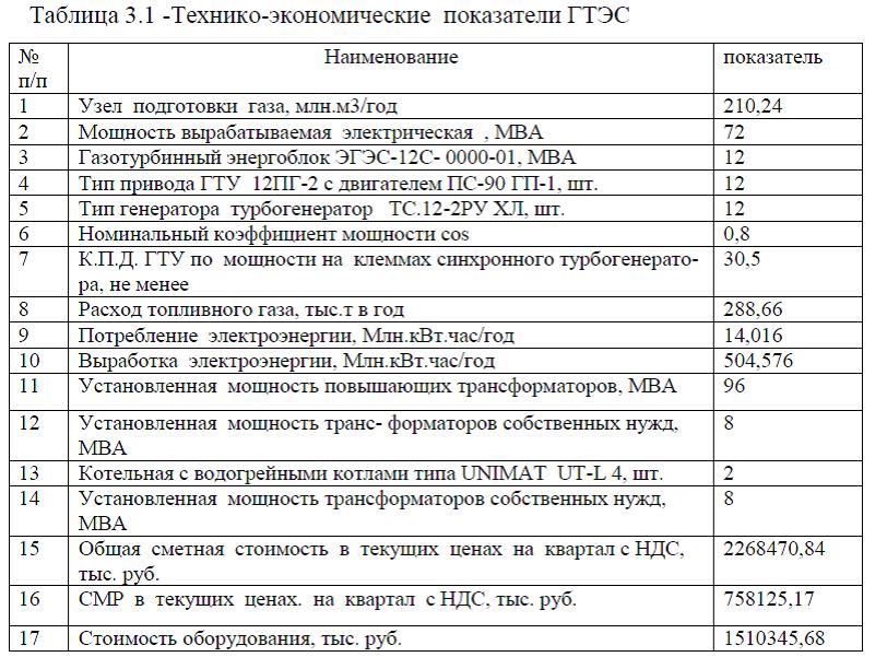 Технико-экономические показатели ГТЭС представлены в таблице 3.1.