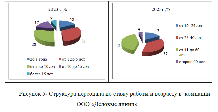 По возрасту большая часть работников в возрасте от 41 до 60 лет , их доля составляет 42,0%, немногим меньше приходится на сотрудников в возрасте от 25 до 40 лет, их доля составила 37,0%, Небольшой удельный вес занимают работники в возрасте старше 60 лет, их доля сформировалась на уровне 4,0%, рисунок 5.