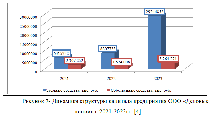 Рост капитала произошел за счет увеличения собственных средств на 41,47% и на 363,10% увеличился заемный капитал, рисунок 7.