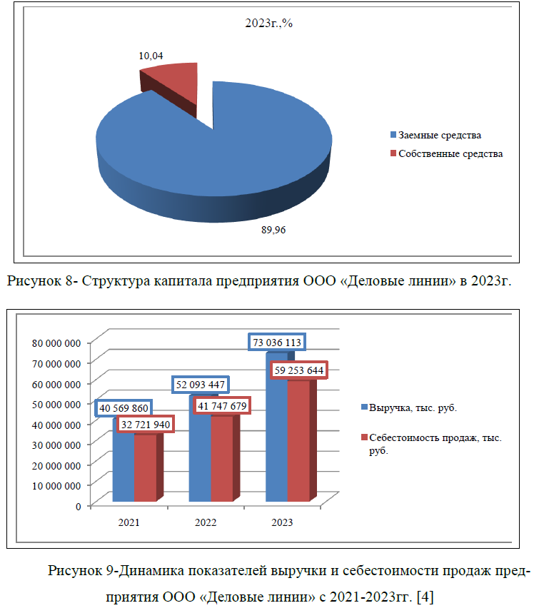 Компания ООО «Деловые линии» является финансово-зависимой, так как наибольший удельный вес в структуре капитала приходится на заемные средства и в 2023г. их доля составила 89,96%, рисунок 8.