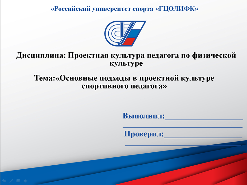 Слайд 1. Дисциплина: Проектная культура педагога по физической культуре.