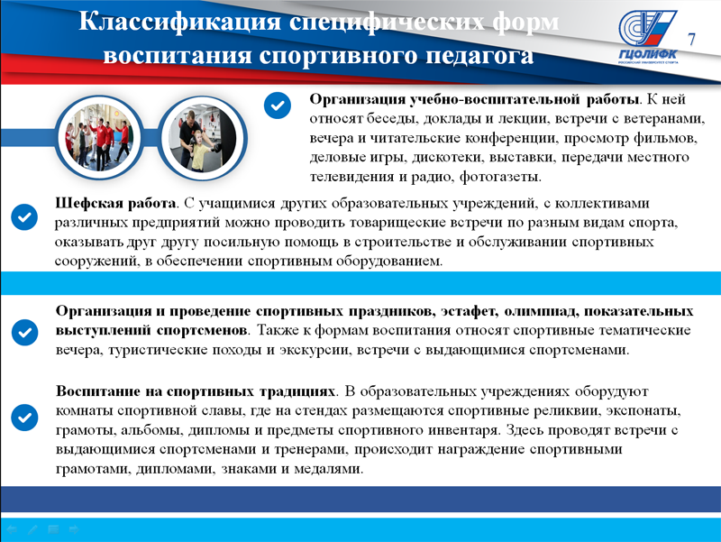 Презентация: Специфика использования общепедагогических и специфических форм воспитания в деятельности специалиста в сфере физической культуры и спорта