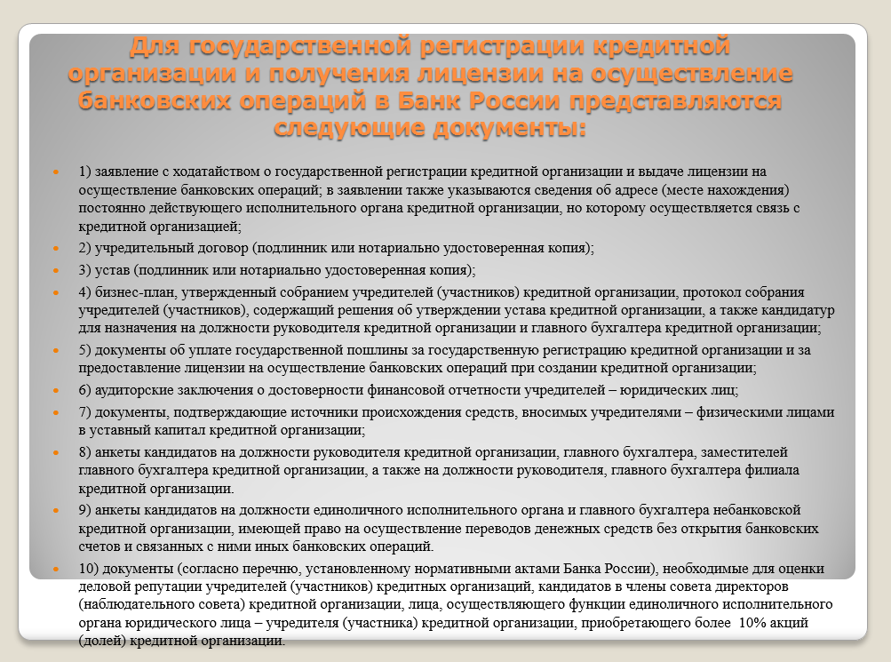 Презентация на тему: «Государственная регистрация кредитных организаций»