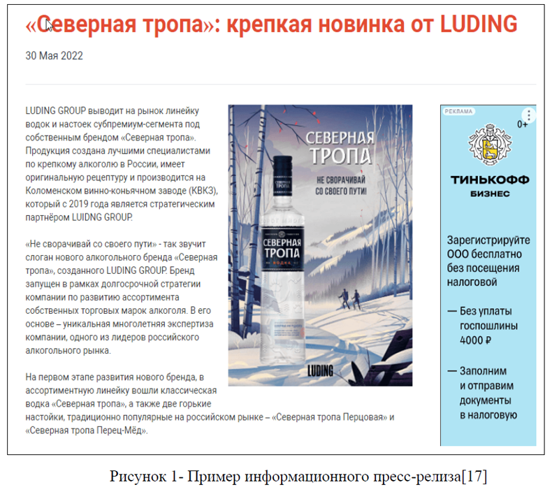 Информационный пресс-релиз – это сообщение, призванное рассказать о компании, услуге, продукте. В тексте говорится об изменениях, выходе на новый уровень. Информационный материал обязательно содержит сведения о промежуточных этапах работы. Такой пресс-релиз информирует о текущем, ещё не завершённом событии. В нём даётся только отчёт о текущих изменениях или новом повороте событий, предполагая, что суть этого события уже известна, рисунок 1.