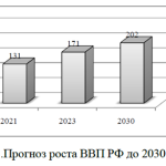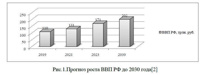 По оценкам Минэкономразвития к 2030 году объем ВВП РФ составит 202 трлн. рублей, рисунок 1.