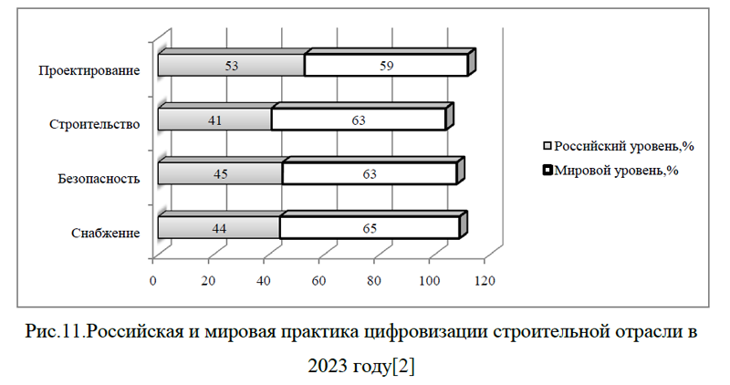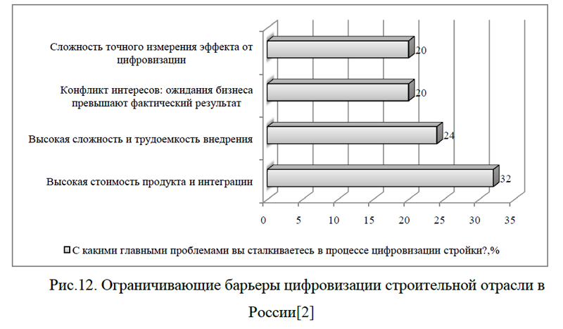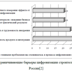 Основные преимущества цифровизации строительной отрасли: повышение эффективности и производительности, улучшение качества работ, сокращение затрат, улучшенный контроль и управление, инновационный имидж. При этом, строительная отрасль, при цифровизации сталкивается с определенными трудностями, наиболее популярные из них: высокие затраты на внедрение, недостаток квалифицированных специалистов, сопротивление изменениям, безопасность данных, необходимость стандартизации[3].