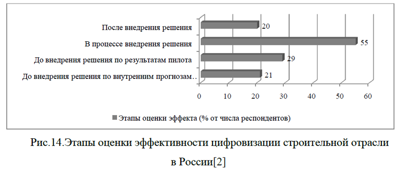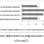 При этом 55,0% респондентов оценивают эффективность цифровизации в процессе внедрения решения, 20,0%-21,0%-дают оценку цифрового проекта после и до внедрения решения, соответственно. Лишь третья часть респондентов (29,0%) предпочитают оценивать эффективность до внедрения решения, рисунок 14.