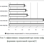 Таким образом, цифровая трансформация строительной отрасли создает новые возможности для развития, а это положительно влияет на социальную защиту и экономику. Перспективы внедрения цифровых решений позволяют сделать вывод, что строительная отрасль одна из первых займет ТОП- рейтинга среди цифровизации отраслей российской экономики.