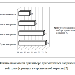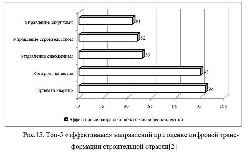 Представители строительного бизнеса рассматривают как «модные», так и прагматичные направления цифровой трансформации. При этом, среди прагматичных направлений лидирующие позиции занимают: управление закупками, управление проектированием и документацией. В будущем приоритет в цифровизации строительной отрасли может быть отдан направлениям: контроль качества строительных работ и управление сроками. Основными барьерами цифровой трансформации отрасли являются высокая стоимость и скорость внедрения цифровых решений. Однако, какими бы не были проблемы цифровой трансформации строительной отрасли, плюсов от цифровизации все же больше, чем минусов.