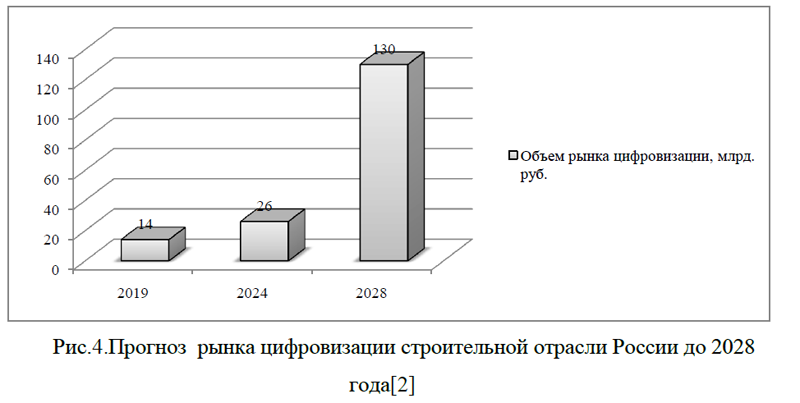 К 2028 году рынок цифровой трансформации строительной отрасли в России покажет рост в четыре раза по сравнению с показателем 2024 года и составит 130 млрд. рублей, рисунок 4.