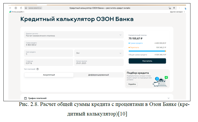 10. Кредитный калькулятор ОЗОН Банка [Электронный ресурс]- Режим доступа: https://www.sravni.ru/bank/ozon-bank/kredity/kalkuljator/(дата обращения 20.01.2025)