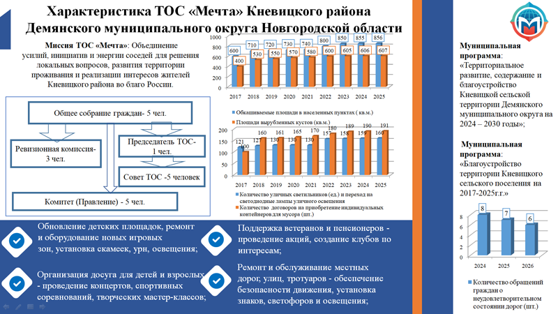 Характеристика ТОС «Мечта» Кневицкого района Демянского муниципального округа Новгородской области (слайд 6)