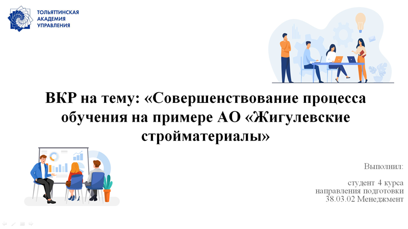 Уважаемые члены комиссии! Вашему вниманию предлагается выпускная квалификационная работа на тему: «Совершенствование процесса обучения на примере АО «Жигулевские стройматериалы» (слайд 1)