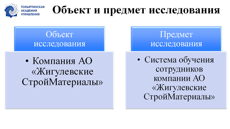 Объектом исследования данной работы является компания АО «Жигулевские стройматериалы». Предмет исследования: система обучения сотрудников компании АО «Жигулевские стройматериалы».