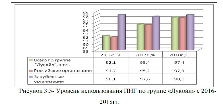 Показатель уровня использования ПНГ в 2018г. достиг значения 97,4%, а это на 5,3% выше уровня начала анализируемого периода, рисунок 3.5.