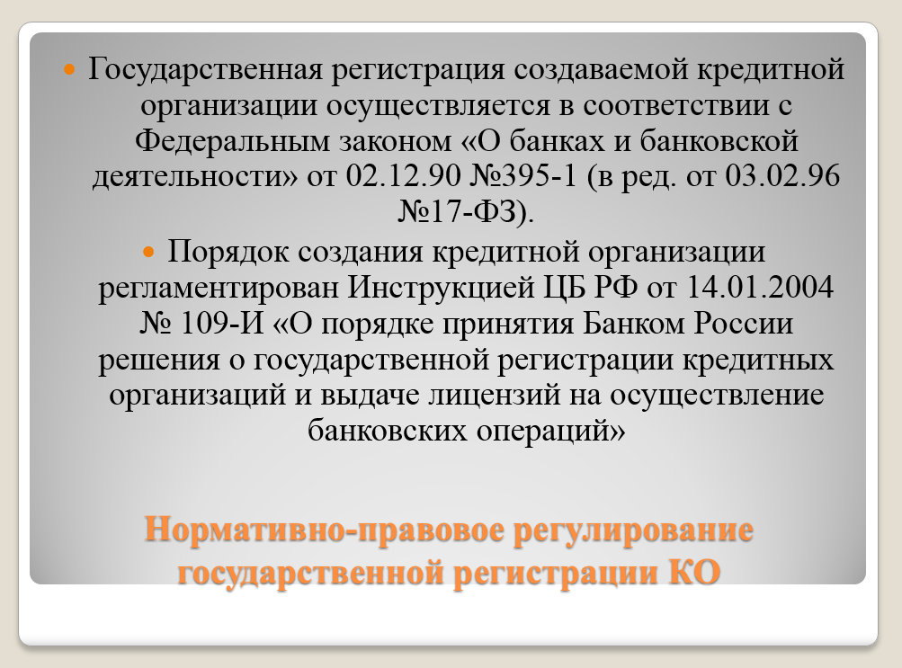 Презентация на тему: «Государственная регистрация кредитных организаций»