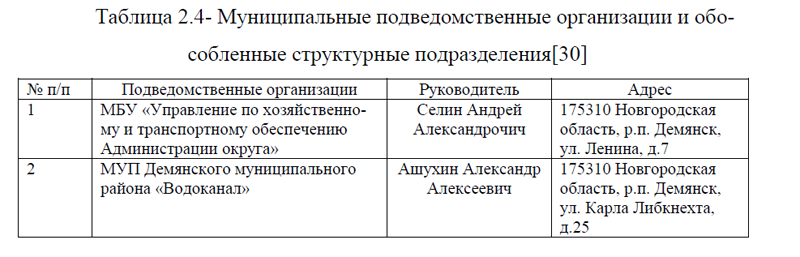 ГЛАВА 2. ХАРАКТЕРИСТИКА ДЕЯТЕЛЬНОСТИ АДМИНИСТРАЦИИ ДЕМЯНСКОГО МУНИЦИПАЛЬНОГО ОКРУГА НОВГОРОДСКОЙ ОБЛАСТИ