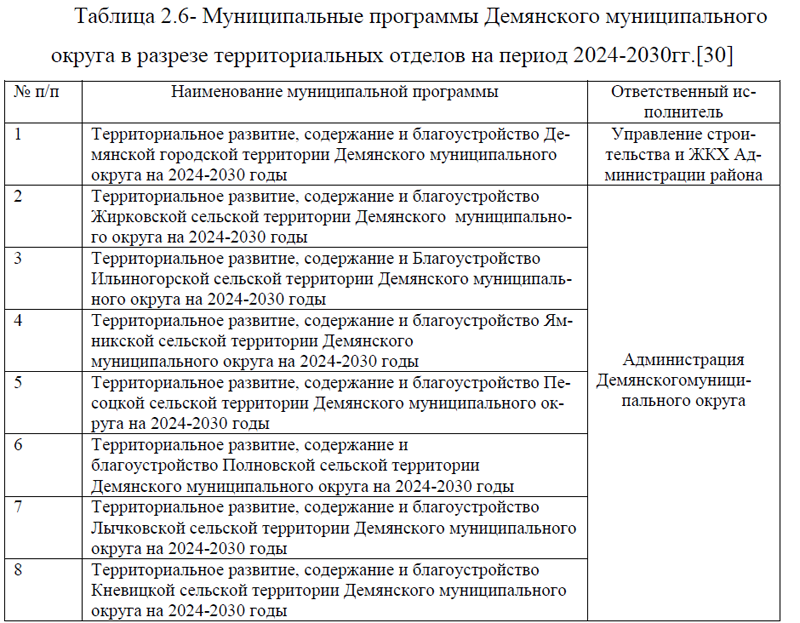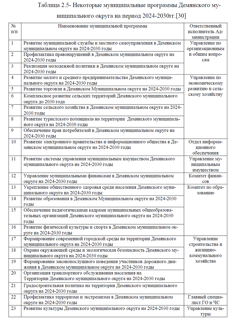 2.3. Меры поддержки, проекты и программы деятельности Администрации Демянского муниципального округа Новгородской области