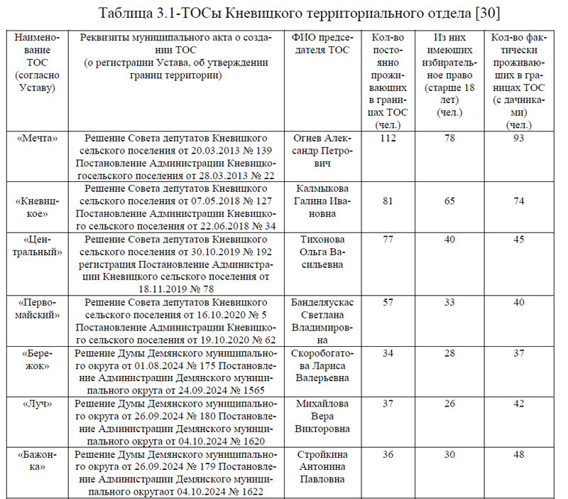 Объектом исследования является ТОС «Мечта» Кневицкого территориального отдела Демянского муниципального округа Новгородской области. Предмет исследования – модель взаимодействия ТОС «Мечта» с Администрацией Демянского муниципального округа Новгородской области.