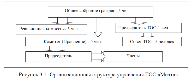 Структурно выпускная квалификационная работа состоит из введения, трех глав, заключения, списка использованных источников и приложений. Во введении обосновывается актуальность темы исследования, цель, задачи, объект и предмет исследования. Первая глава является теоретической, в ней описано понятие, правовой статус, компетенция и полномочия органов ТОС, дана оценка развития ТОС в России, изучены проблемы и перспективы российских ТОС, рассмотрен зарубежный опыт организации деятельности ТОС и возможности его применения в России. Во второй аналитической главе представлена общая характеристика Демянского муниципального округа Новгородской области; изучена структура управления, основные направления деятельности, меры поддержки, проекты и программы Администрации Демянского муниципального округа Новгородской области. В третьей проектной главе дана общая характеристика деятельности ТОС «Мечта» Демянского муниципального округа Новгородской области; проанализирована схема взаимодействия ТОС «Мечта» с Администрацией Демянского муниципального округа, выявлены проблемы и рассмотрены направления совершенствования механизма взаимодействия этих структур. В заключении представлены краткие выводы проведенного исследования.