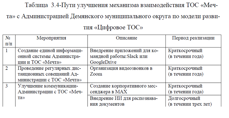 3.3. Пути совершенствования механизма взаимодействия ТОС «Мечта» с Администрацией Демянского муниципального округа Новгородской области