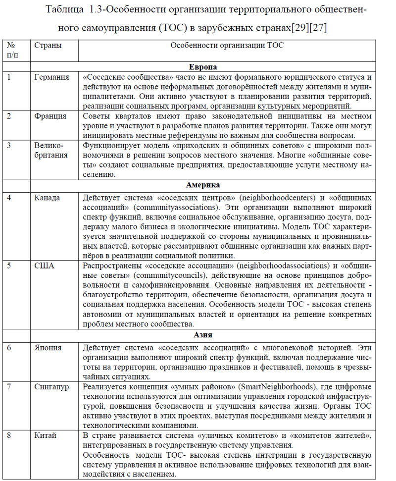 1.3. Зарубежный опыт организации деятельности ТОС и возможности его применения в России